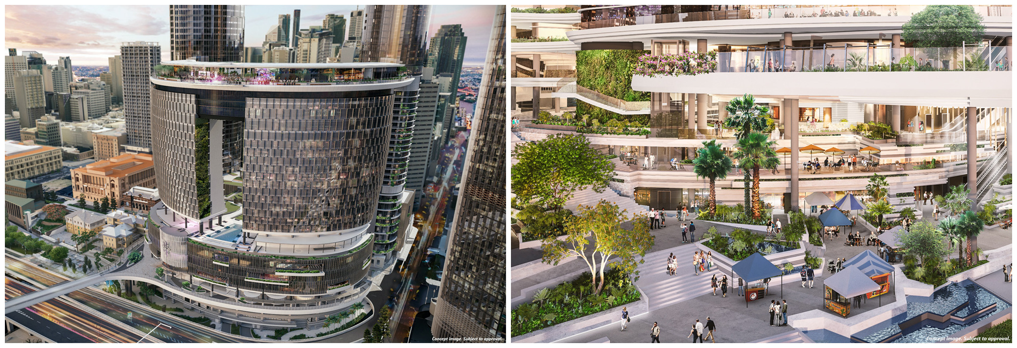 Queen’s Wharf in Brisbane is a world-class integrated resort development that will transform the Central Business District (CBD) and river’s edge. The Destination Brisbane Consortium is delivering the development, which will cover more than 26 hectares across land and water — equivalent to 10% of Brisbane’s CBD. The development encompasses 50 new bars, cafes and restaurants; 2,000 apartments across three residential towers; and more than 1,100 premium hotel rooms operating under four hotel brands, one with a casino.