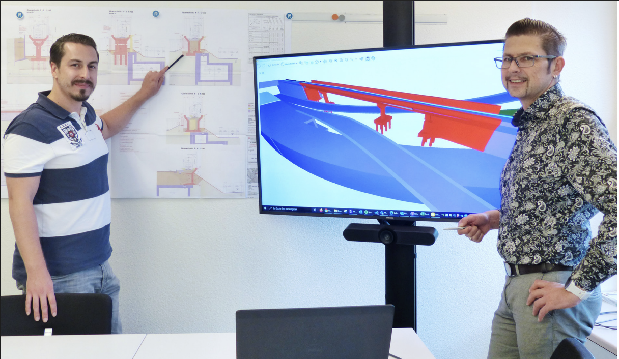 But one thing in particular challenged Sebastian Kunz: the modeling of a body on two edges. “This involved modeling the retaining wall, whose foundations (lower edge) are oriented to the road alignment and whose wall head (upper edge) is oriented to the terrain above,” explains the CAD designer. The data from the route planning, which is processed by a partner office of IG, was imported into the model as far as possible and supplemented where necessary. Team leader Larsen Szulerski is more than satisfied with what has been achieved so far: “We have been in an ongoing learning process for the past two years and are happy about any progress. This can be measured not only in terms of improved efficiency, but much more in terms of the new possibilities that ultimately lead to a higher quality of our work. On this path, however, we must have the courage and openness to try out new things. That‘s the only way we can continue to develop.”